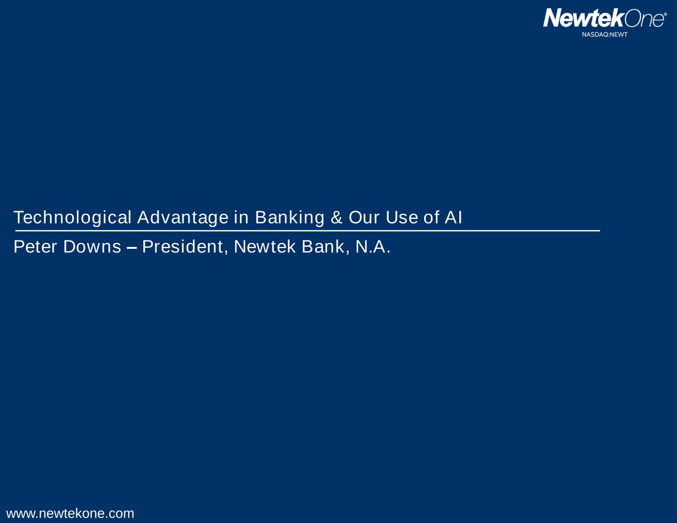www.newtekone.com Technological Advantage in Banking & Our Use of AI Peter Downs – President, Newtek Bank, N.A.
