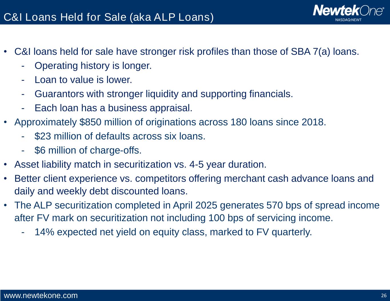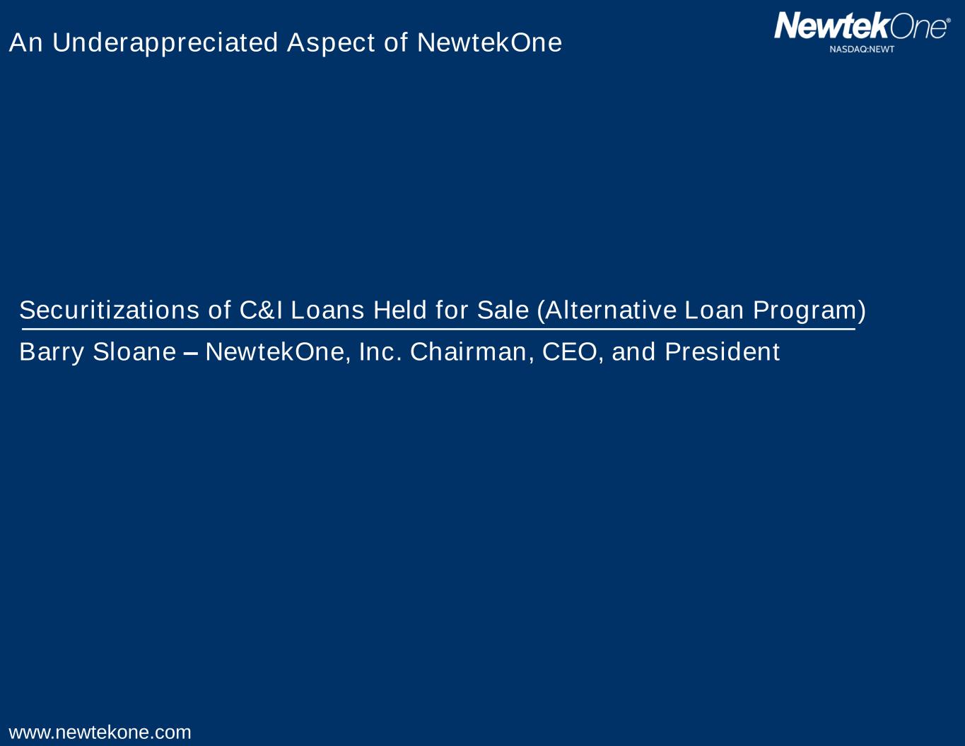 www.newtekone.com An Underappreciated Aspect of NewtekOne Securitizations of C&I Loans Held for Sale (Alternative Loan Program) Barry Sloane – NewtekOne, Inc. Chairman, CEO, and President
