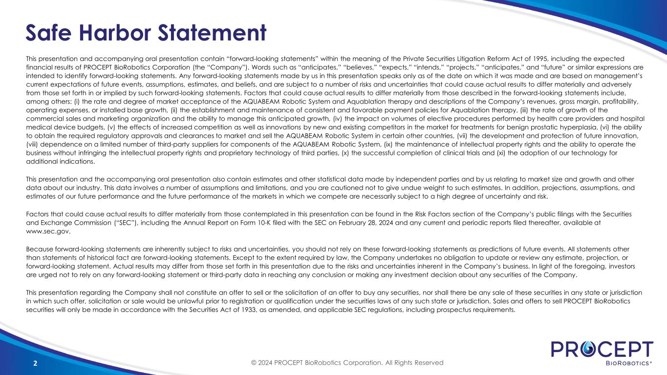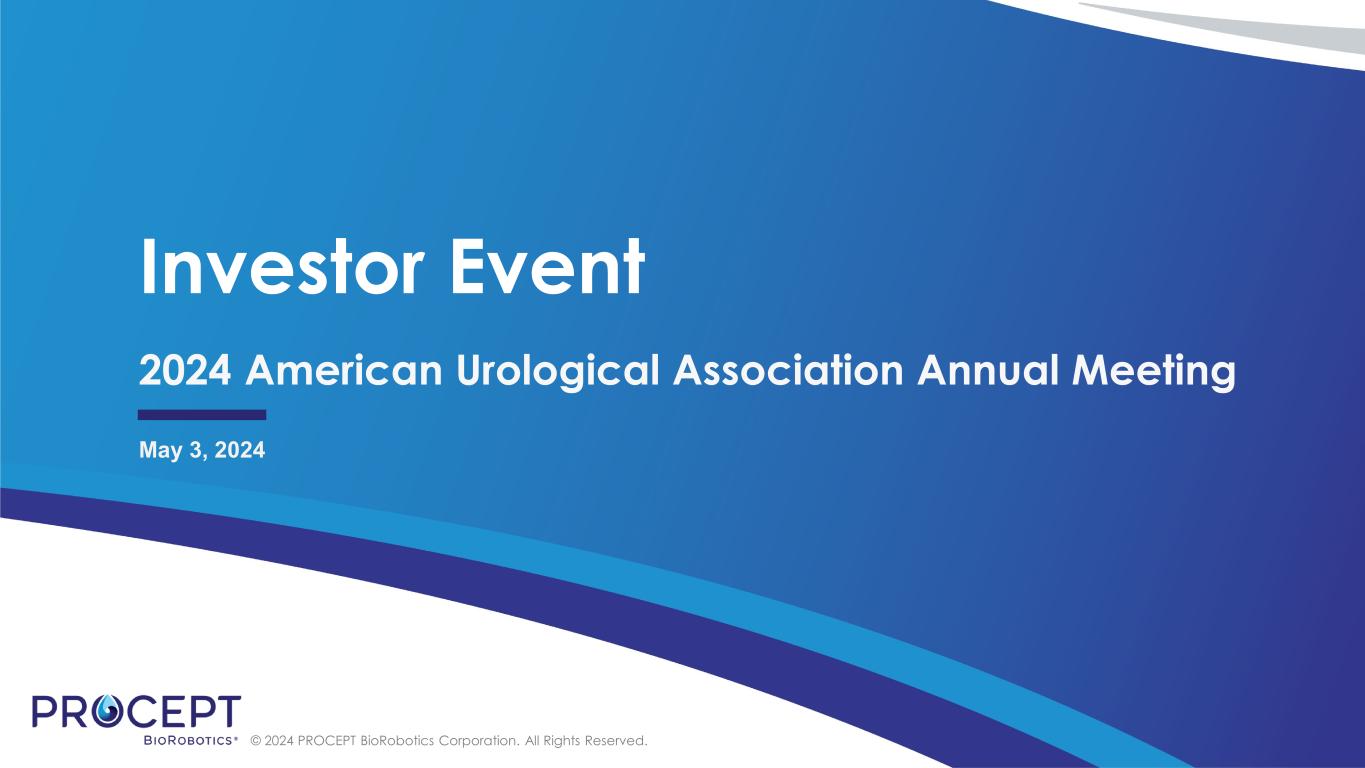 © 2024 PROCEPT BioRobotics Corporation. All Rights Reserved. Investor Event 2024 American Urological Association Annual Meeting May 3, 2024