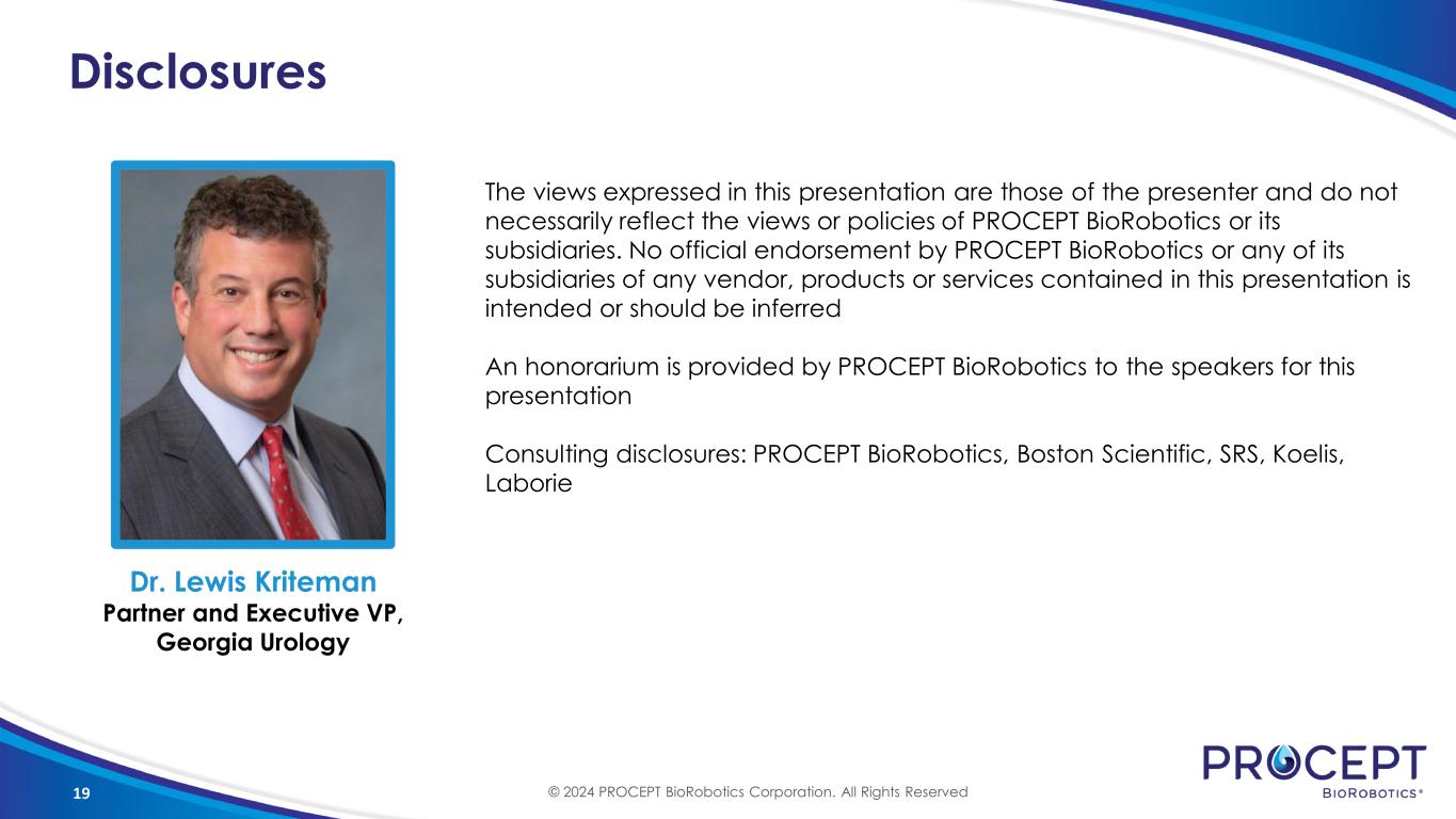 © 2024 PROCEPT BioRobotics Corporation. All Rights Reserved. GEORGIA UROLOGY ADOPTION Dr. Lewis Kriteman Partner and Executive VP, Georgia Urology
