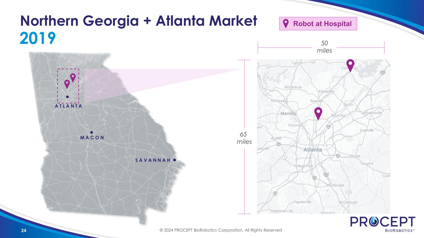 24 Northern Georgia + Atlanta Market 2019 A T L A N T A M A C O N S A V A N N A H 50 miles 65 miles © 2024 PROCEPT BioRobotics Corporation. All Rights Reserved Robot at Hospital