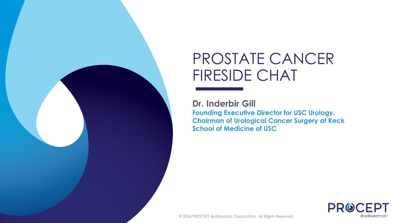 © 2024 PROCEPT BioRobotics Corporation. All Rights Reserved. PROSTATE CANCER FIRESIDE CHAT Dr. Inderbir Gill Founding Executive Director for USC Urology. Chairman of Urological Cancer Surgery at Keck School of Medicine of USC