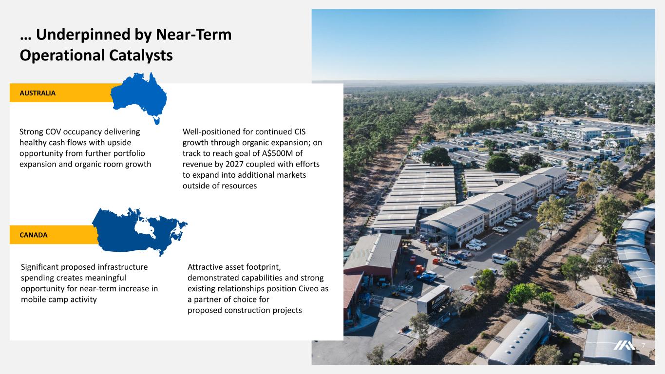 6 Civeo is Positioned for Ongoing Value Creation… Generating recurring cash flow from a diverse and synergistic asset mix and exposure to all phases of project lifecycles across a broad range of commodities Increased share repurchases to augment returns to shareholders Opportunistically deploying capital to support strategic initiatives while maintaining a healthy balance sheet