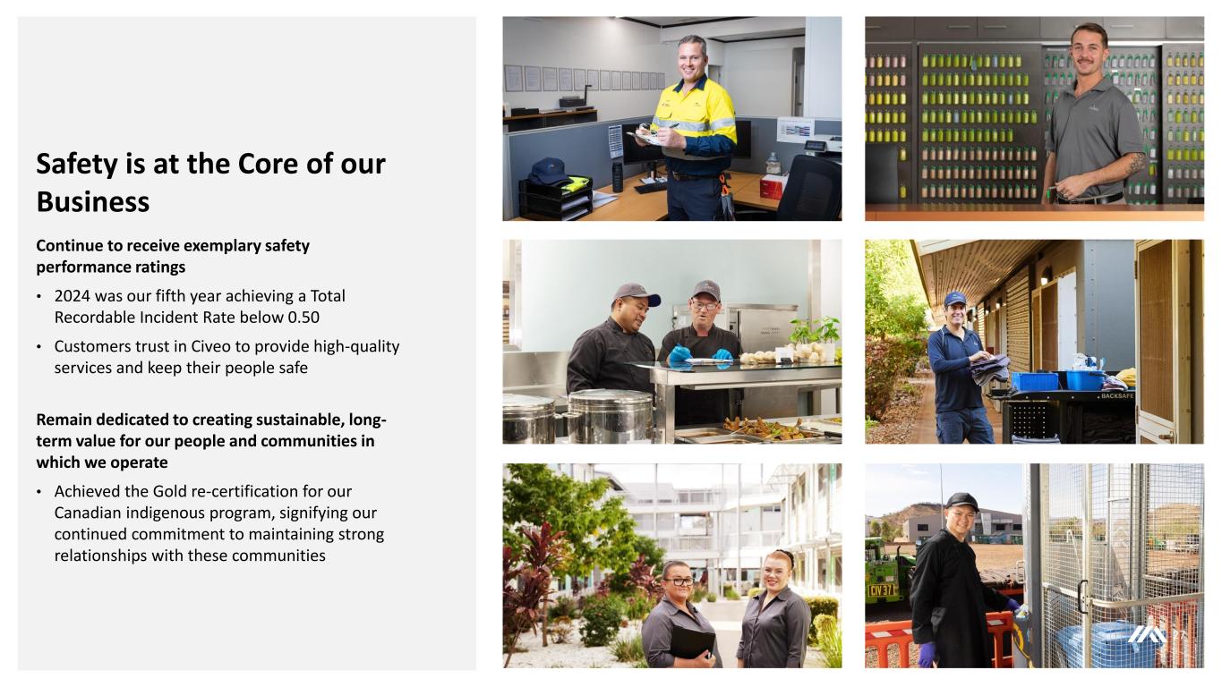 27 Safety is at the Core of our Business Continue to receive exemplary safety performance ratings • 2024 was our fifth year achieving a Total Recordable Incident Rate below 0.50 • Customers trust in Civeo to provide high-quality services and keep their people safe Remain dedicated to creating sustainable, long- term value for our people and communities in which we operate • Achieved the Gold re-certification for our Canadian indigenous program, signifying our continued commitment to maintaining strong relationships with these communities