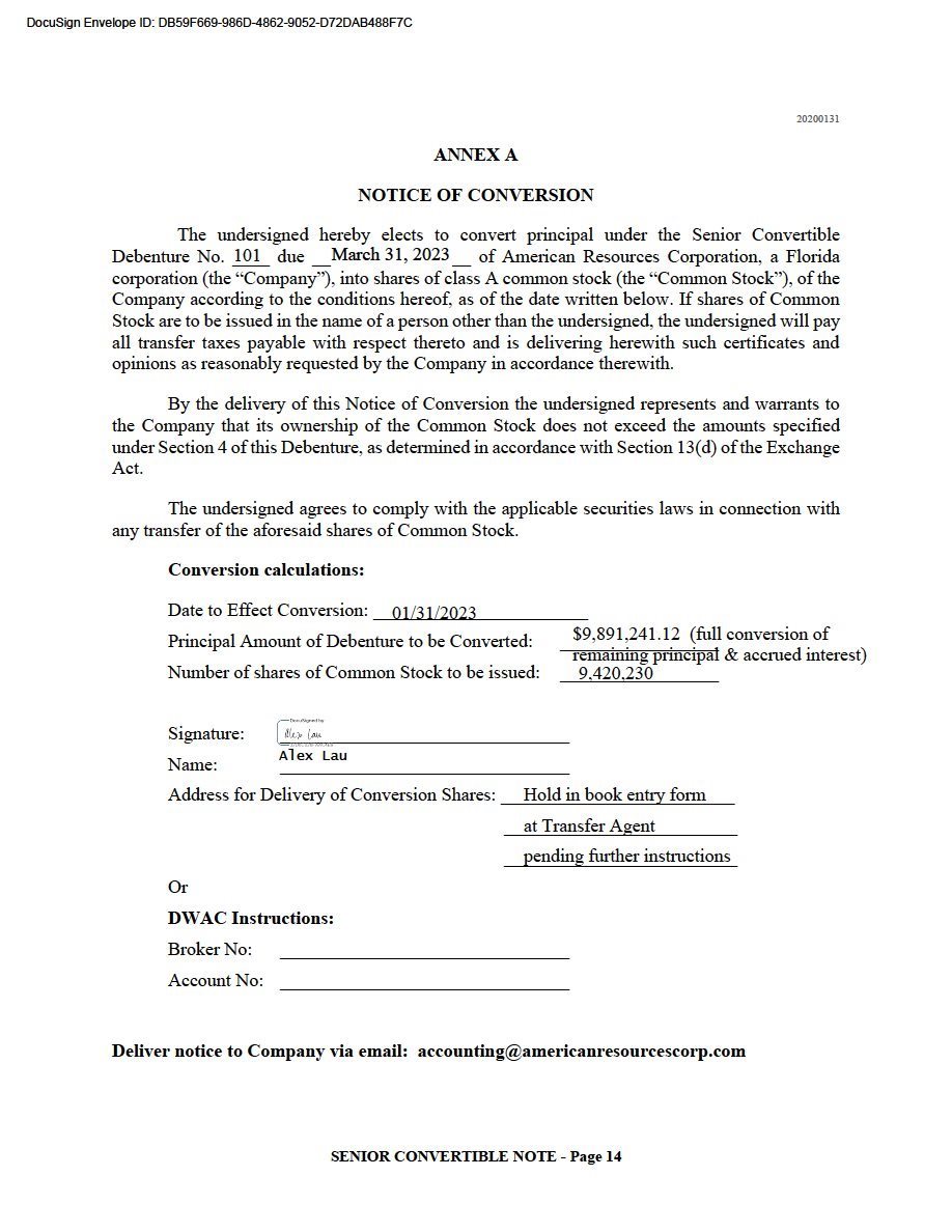EX-99.1 2 arec_ex991.htm NOTICE OF CONVERSION arec_ex991.htm