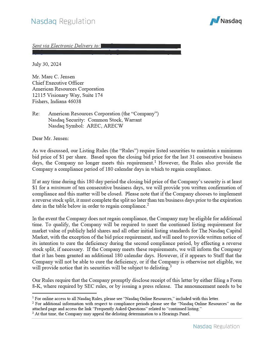EX-99.1 2 arec_ex991.htm NOTIFICATION arec_ex991.htm