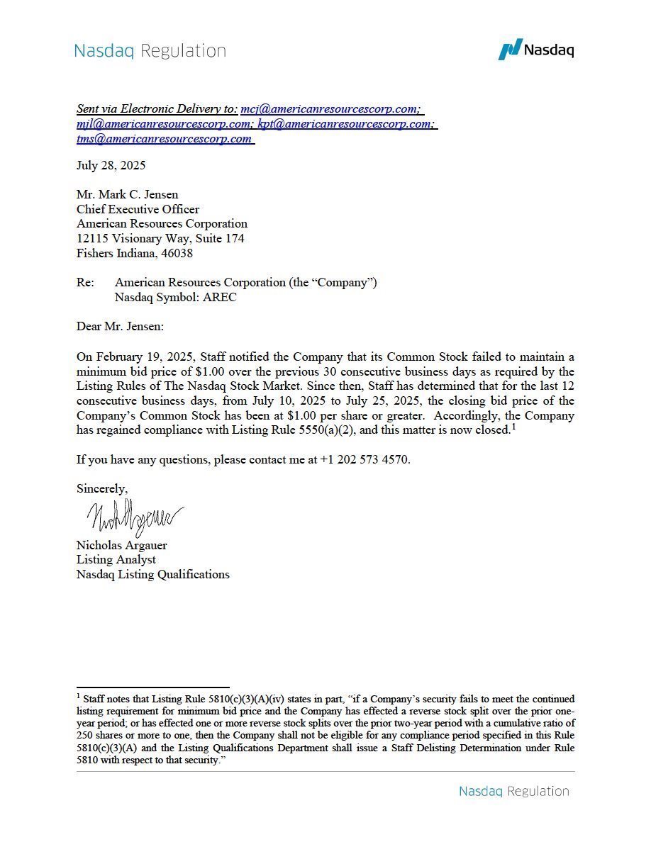 EX-99.1 2 arec_ex991.htm EX-99.1 arec_ex991.htm