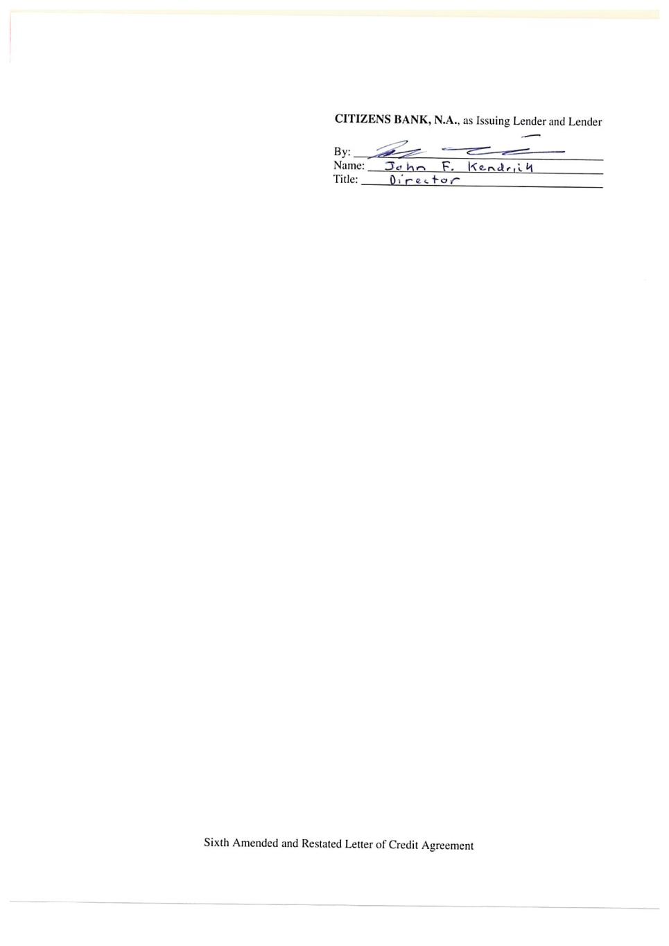 HSBC BANK USA, NATIONAL ASSOCIATION, as Issuing Lender and Lender By: Name: Devon Alexander Title: Vice President, FIG Sixth Amended and Restated Letter of Credit Agreement