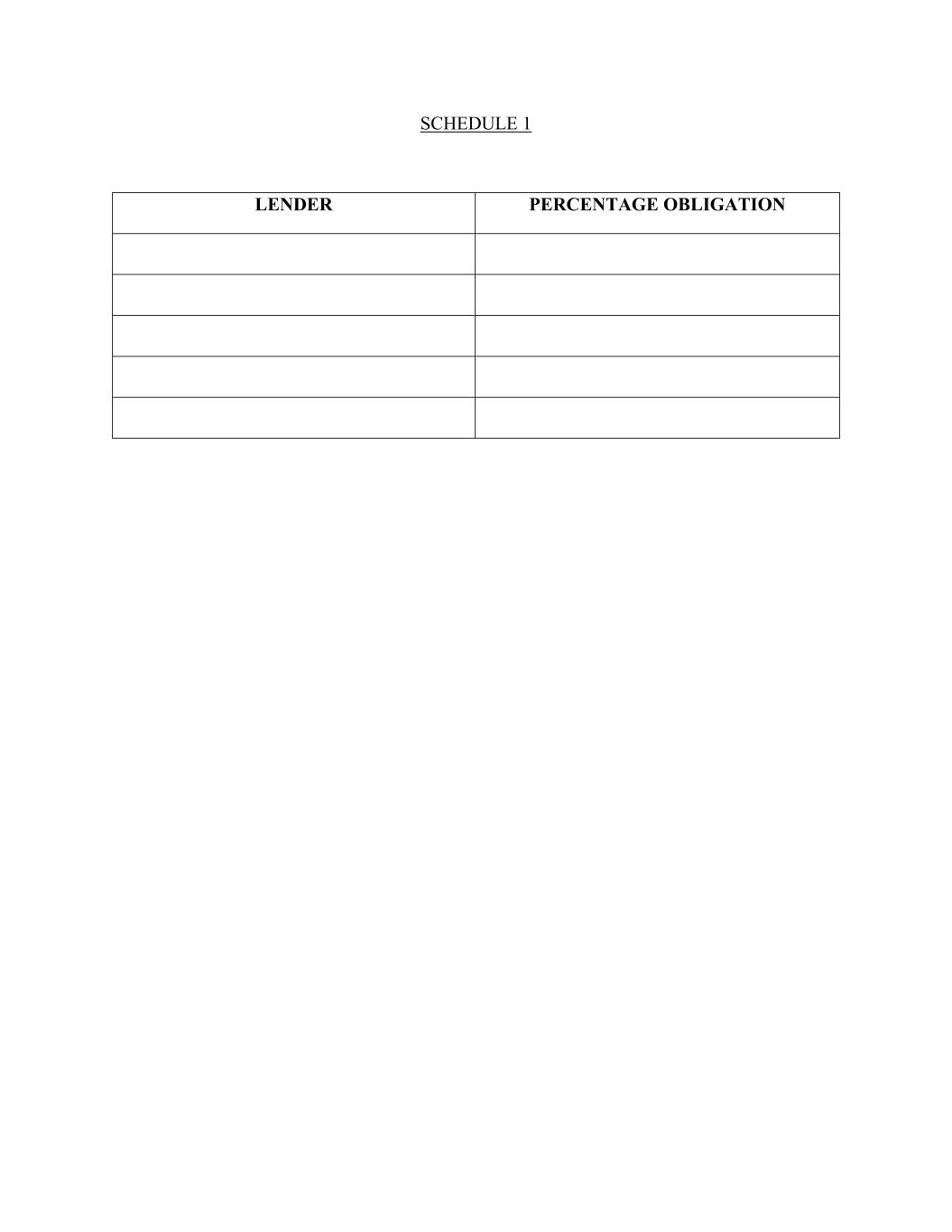SCHEDULE 1 LENDER PERCENTAGE OBLIGATION