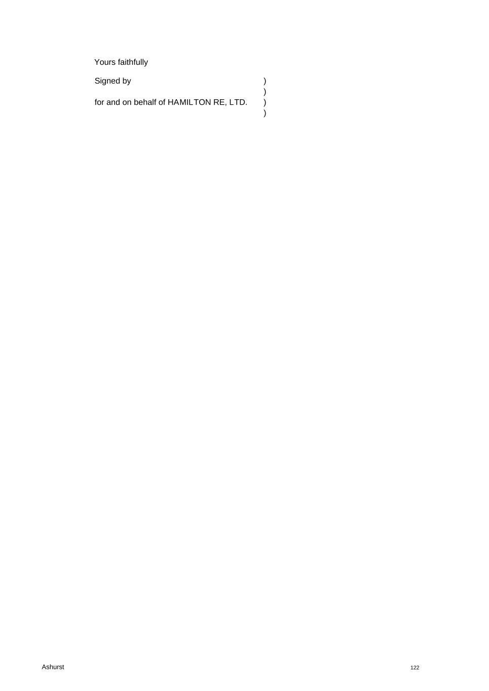 Ashurst 122 Yours faithfully Signed by for and on behalf of HAMILTON RE, LTD. ) ) ) )