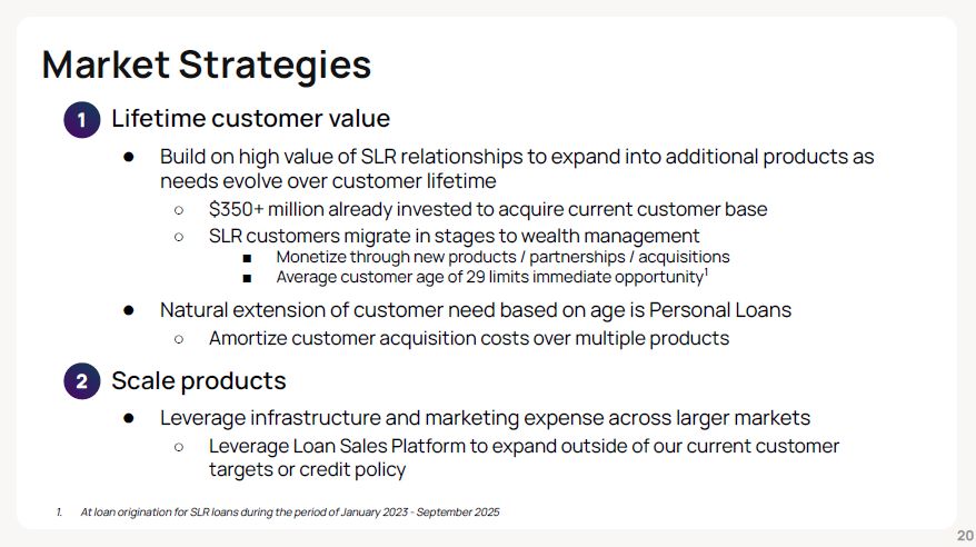 Market Strategies  Lifetime customer value  Build on high value of SLR relationships to expand into additional products as needs evolve over customer lifetime  $350+ million already invested to acquire current customer base  SLR customers migrate in stages to wealth management  Monetize through new products / partnerships / acquisitions  Average customer age of 29 limits immediate opportunity1  Natural extension of customer need based on age is Personal Loans  Amortize customer acquisition costs over multiple products  Scale products  Leverage infrastructure and marketing expense across larger markets  Leverage Loan Sales Platform to expand outside of our current customer targets or credit policy  1. At loan origination for SLR loans during the period of January 2023 - September 2025  20