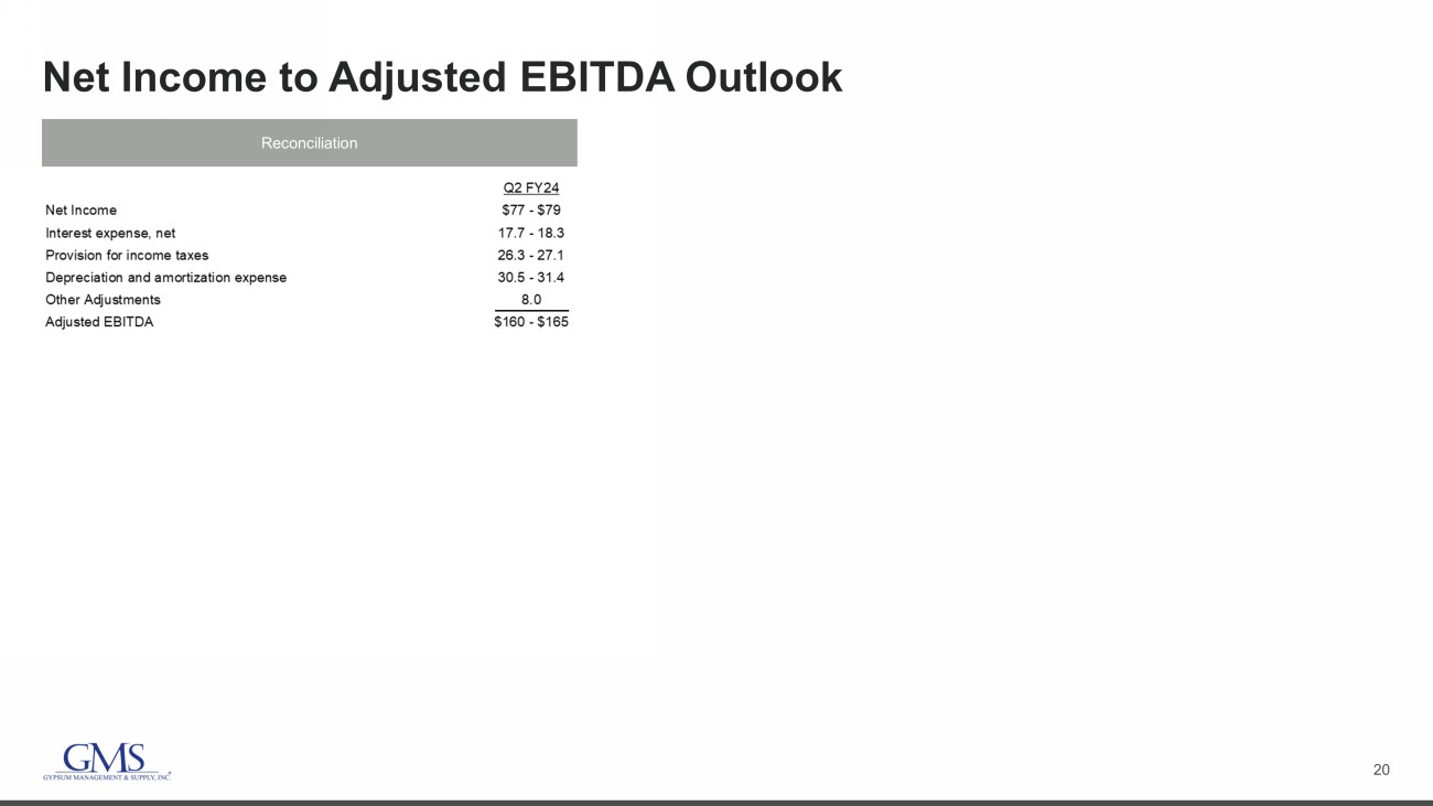 20 Net Income to Adjusted EBITDA Outlook Reconciliation