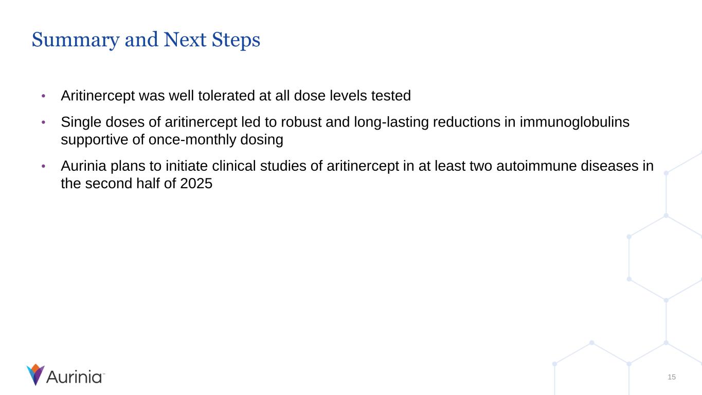 June 30, 2025 Aritinercept (AUR200) A Dual BAFF/APRIL Inhibitor for the Potential Treatment of Autoimmune Diseases Results from a Phase 1 Study