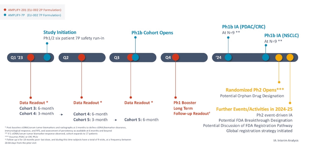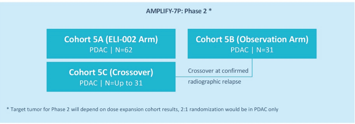 The ELI-002 program is planned to provide multiple potential pathways to success, including enrolling a cohort of patients with PDAC or CRC in a planned Phase 1/2 study called “AMPLIFY-7P”. Also, subject to receipt of additional funding following the Merger, a clinical trial to study the combination of ELI-002 + LIBTAYO® (cemiplimab, Regeneron’s FDA-approved anti-PD-1 therapy) is planned. Studies are also being considered in other solid tumors and where ELI-002 could target additional RAS isoforms, such as neuroblastoma ras (NRAS) and Harvey rat sarcoma (HRAS), to further expand the addressable population for ELI-002. ELI-002 has the potential to be a universal, all-stage immunotherapeutic for treating and preventing mKRAS-driven cancers.