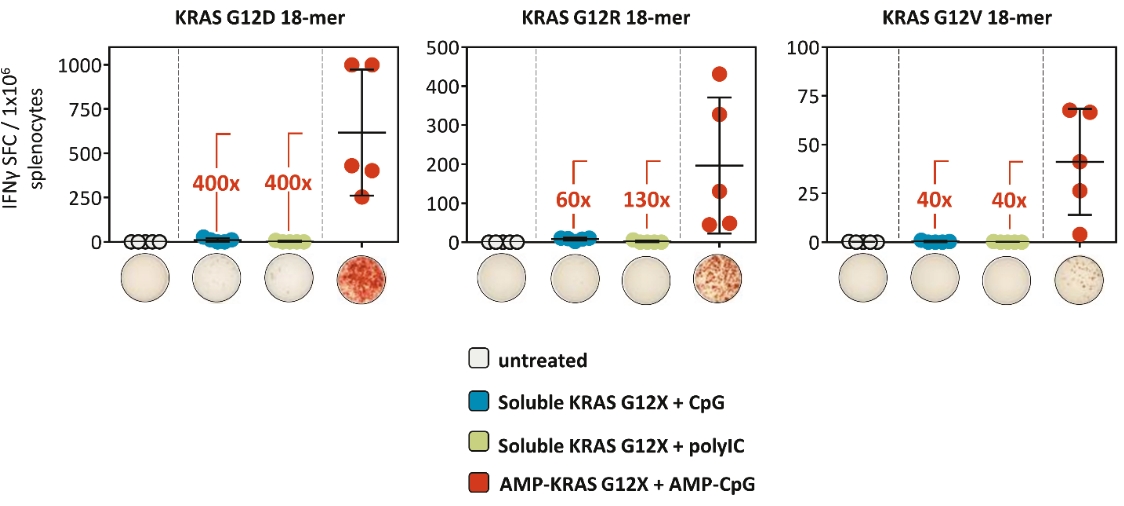 AMP-modified KRAS peptides generated strong immune responses across a range of KRAS mutations