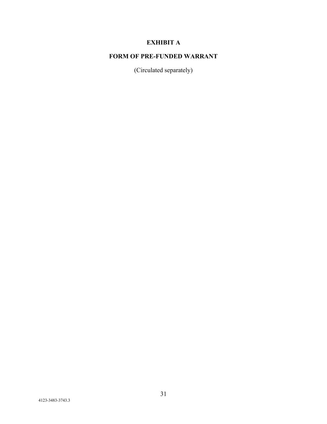31 4123-3483-3743.3 EXHIBIT A FORM OF PRE-FUNDED WARRANT (Circulated separately)