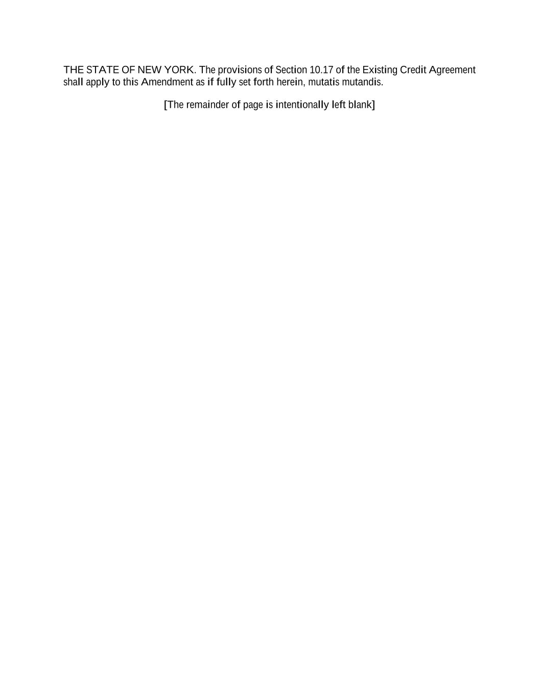 THE STATE OF NEW YORK. The provisions of Section 10.17 of the Existing Credit Agreement shall apply to this Amendment as if fully set forth herein, mutatis mutandis. [The remainder of page is intentionally left blank]