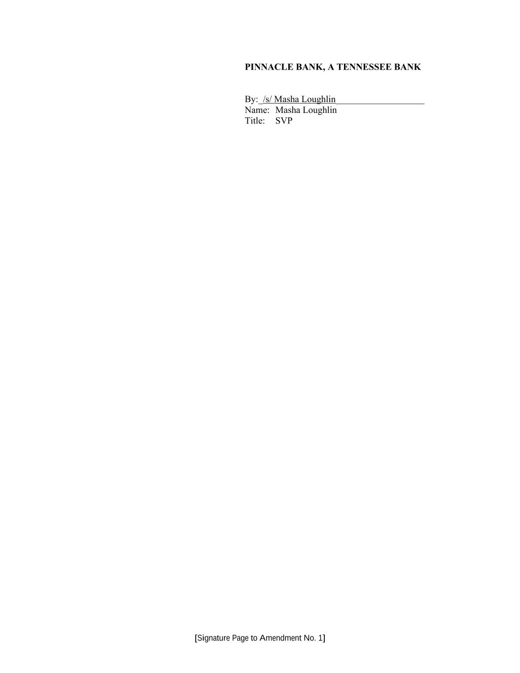 [Signature Page to Amendment No. 1] PINNACLE BANK, A TENNESSEE BANK By:_/s/ Masha Loughlin___________________ Name: Masha Loughlin Title: SVP