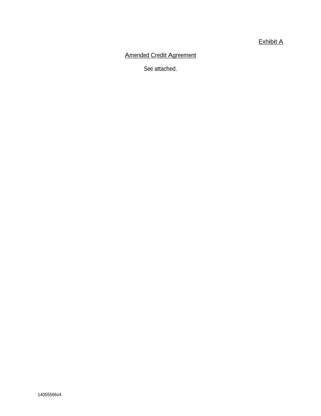 14055566v4 Exhibit A Amended Credit Agreement See attached.