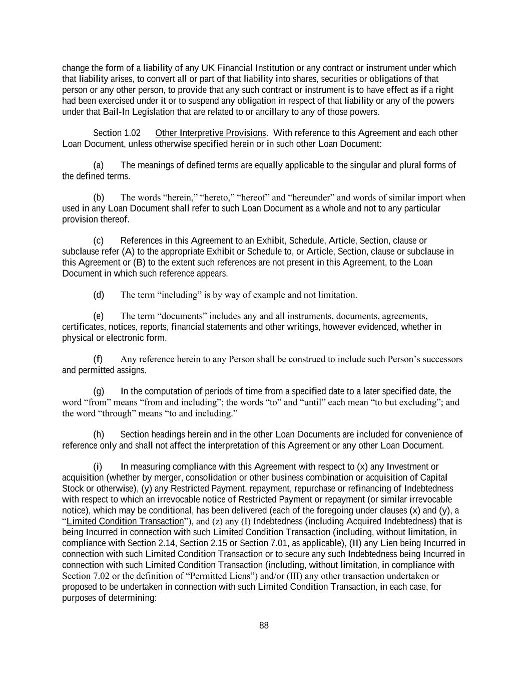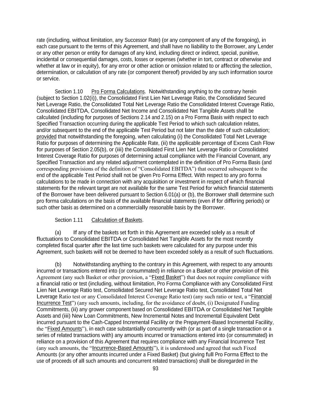 i TABLE OF CONTENTS Page ARTICLE I. Definitions and Accounting Terms .......................................................................................... 1 Section 1.01 Defined Terms ....................................................................................................... 1 Section 1.02 Other Interpretive Provisions ............................................................................... 88 Section 1.03 Accounting Term ................................................................................................. 90 Section 1.04 Rounding .............................................................................................................. 91 Section 1.05 References to Agreements and Laws ................................................................... 91 Section 1.06 Times of Day ....................................................................................................... 91 Section 1.07 Timing of Payment or Performance ..................................................................... 91 Section 1.08 Currency Equivalents Generally .......................................................................... 91 Section 1.09 Benchmark Replacement; Rates .......................................................................... 92 Section 1.10 Pro Forma Calculations ................................................................................... 9493 Section 1.11 Calculation of Baskets ......................................................................................... 94 Section 1.12 Letter of Credit Amounts ..................................................................................... 96 Section 1.13 Divisions .......................................................................................................... 9796 ARTICLE II. The Commitments and Borrowings .................................................................................. 9796 Section 2.01 The Loans ........................................................................................................ 9796 Section 2.02 Borrowings, Conversions and Continuations of Loans ....................................... 97 Section 2.03 Letters of Credit ................................................................................................... 99 Section 2.04 Swingline Loans. ............................................................................................... 107 Section 2.05 Prepayments ................................................................................................. 110109 Section 2.06 Termination or Reduction of Commitments ................................................ 115114 Section 2.07 Repayment of Loans .................................................................................... 116115 Section 2.08 Interest ............................................................................................................... 116 Section 2.09 Fees .................................................................................................................... 117 Section 2.10 Computation of Interest and Fees ...................................................................... 117 Section 2.11 Evidence of Indebtedness ............................................................................ 118117 Section 2.12 Payments Generally; Administrative Agent’s Clawback................................... 118 Section 2.13 Sharing of Payments .......................................................................................... 120 Section 2.14 Incremental Facilities ......................................................................................... 121 Section 2.15 New Incremental Notes ..................................................................................... 125 Section 2.16 Cash Collateral ................................................................................................... 125 Section 2.17 Defaulting Lenders ............................................................................................ 126 Section 2.18 Specified Refinancing Debt ............................................................................... 128 Section 2.19 Permitted Debt Exchanges ................................................................................. 129 ARTICLE III. Taxes, Increased Costs Protection and Illegality......................................................... 131130 Section 3.01 Taxes ............................................................................................................ 131130 Section 3.02 [Reserved] .......................................................................................................... 134 Section 3.03 Illegality ............................................................................................................. 134 Section 3.04 Inability to Determine Rates ........................................................................ 135134 Section 3.05 Increased Cost and Reduced Return; Capital Adequacy and Liquidity Requirements ..................................................................................................... 135 Section 3.06 Funding Losses ............................................................................................ 136135