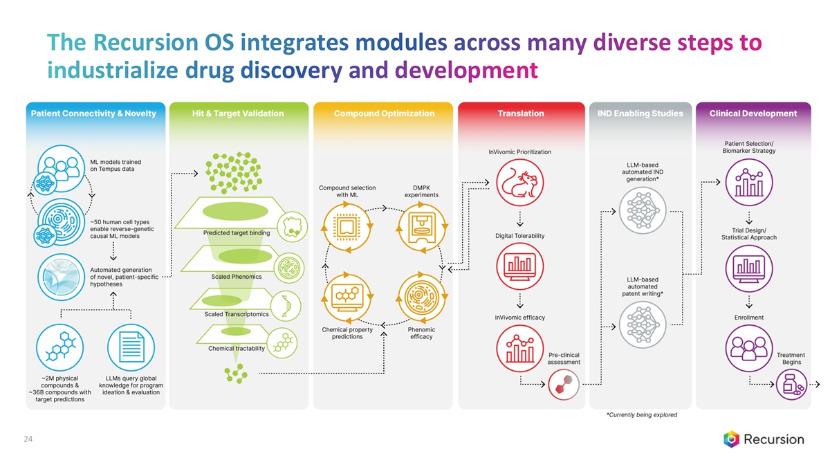 The Recursion OS integrates modules across many diverse steps to industrialize drug discovery and development 24