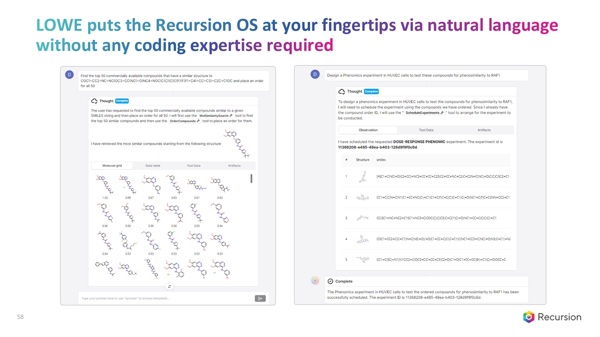 LOWE puts the Recursion OS at your fingertips via natural language without any coding expertise required [ DEMO ] 58