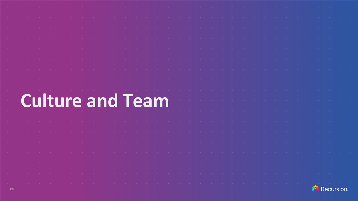 The Recursion OS is now more than a collection of point solutions accessible to expert users …it is increasingly integrated and accessible via a Discovery User Interface that can be used by any of our scientists from the comfort of their laptop… 59