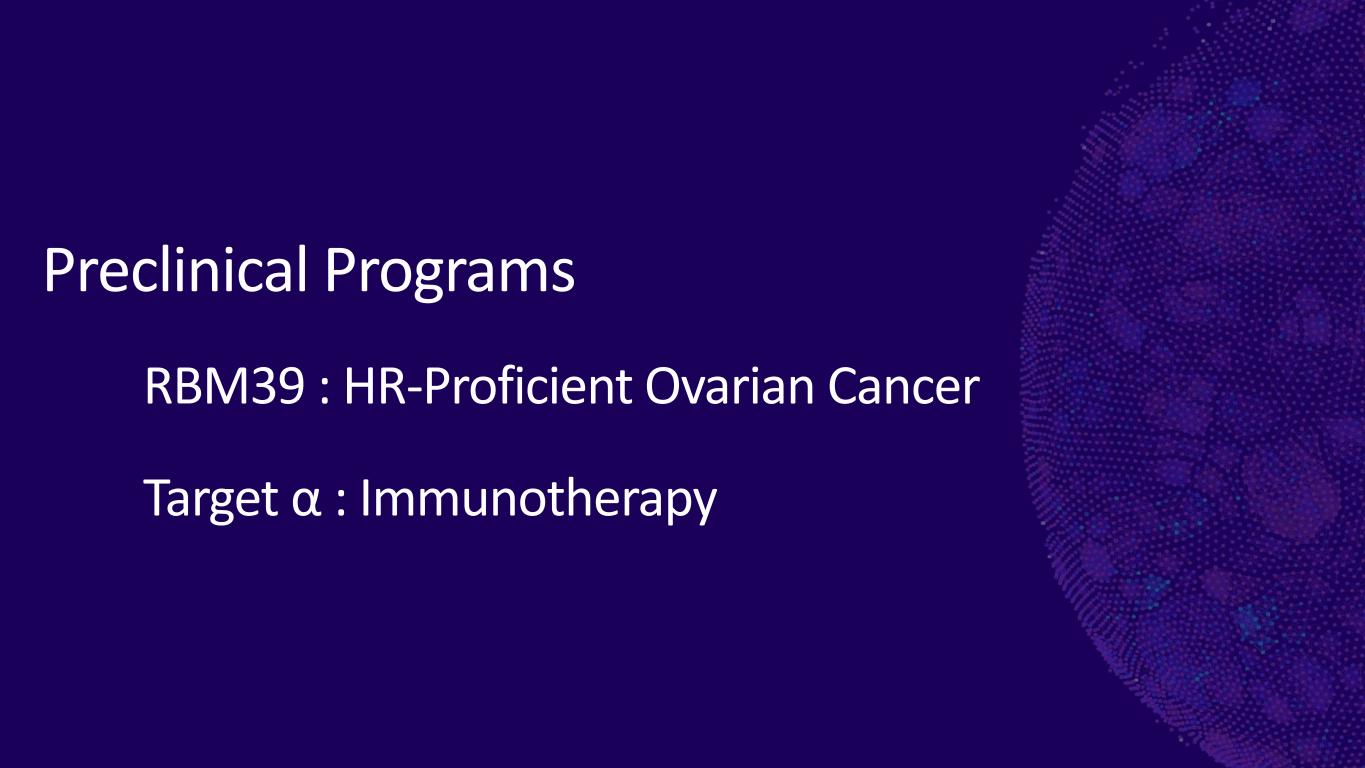 Preclinical Programs RBM39 : HR-Proficient Ovarian Cancer Target α : Immunotherapy