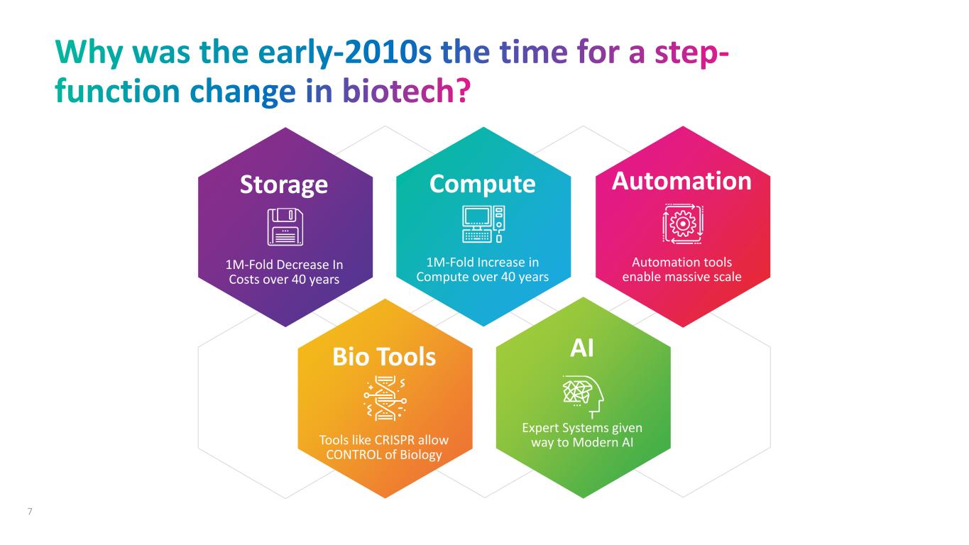 AI Expert Systems given way to Modern AI Automation Automation tools enable massive scale Storage 1M-Fold Decrease In Costs over 40 years Compute 1M-Fold Increase in Compute over 40 years Bio Tools Tools like CRISPR allow CONTROL of Biology Why was the early-2010s the time for a step- function change in biotech? 7