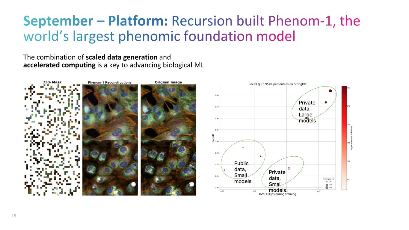 The combination of scaled data generation and accelerated computing is a key to advancing biological ML 18 September – Platform: Recursion built Phenom-1, the world’s largest phenomic foundation model