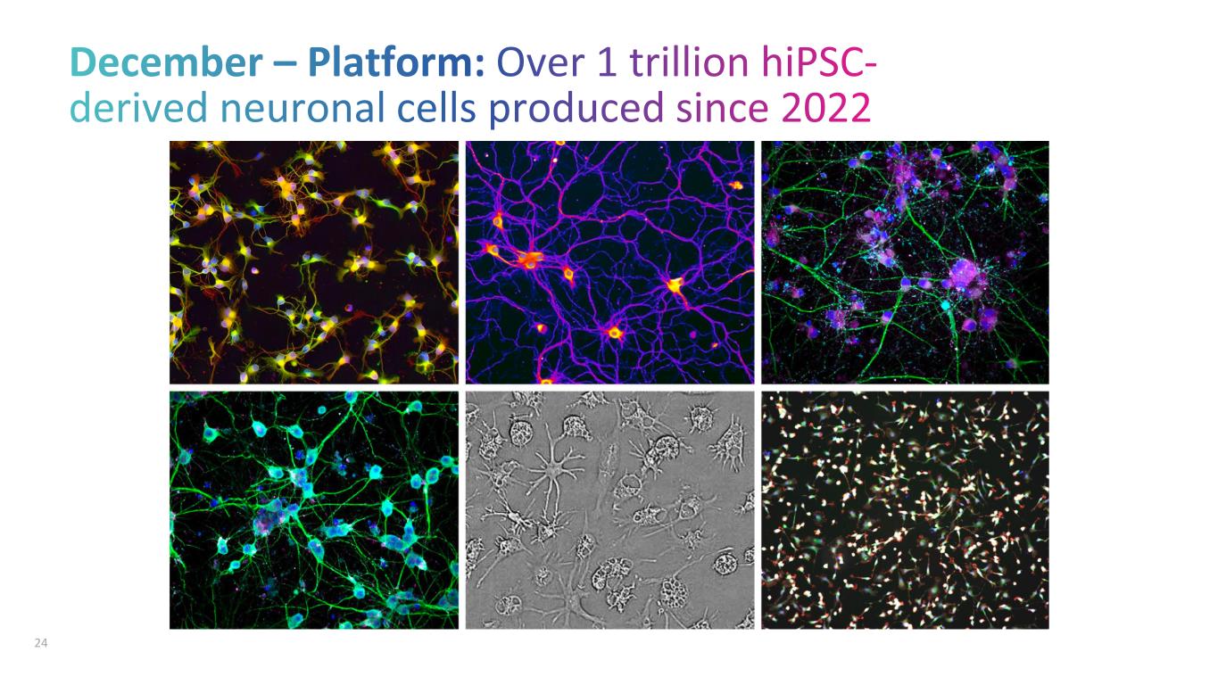 Q4 – Neuro iPSC production slide? Worlds largest producer 24 December – Platform: Over 1 trillion hiPSC- derived neuronal cells produced since 2022