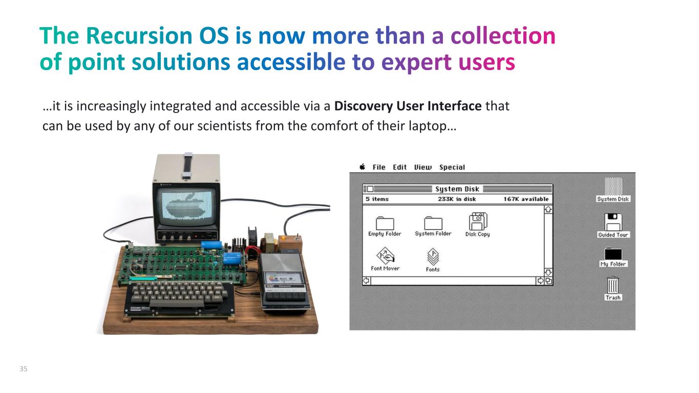 The Recursion OS is now more than a collection of point solutions accessible to expert users …it is increasingly integrated and accessible via a Discovery User Interface that can be used by any of our scientists from the comfort of their laptop… 35