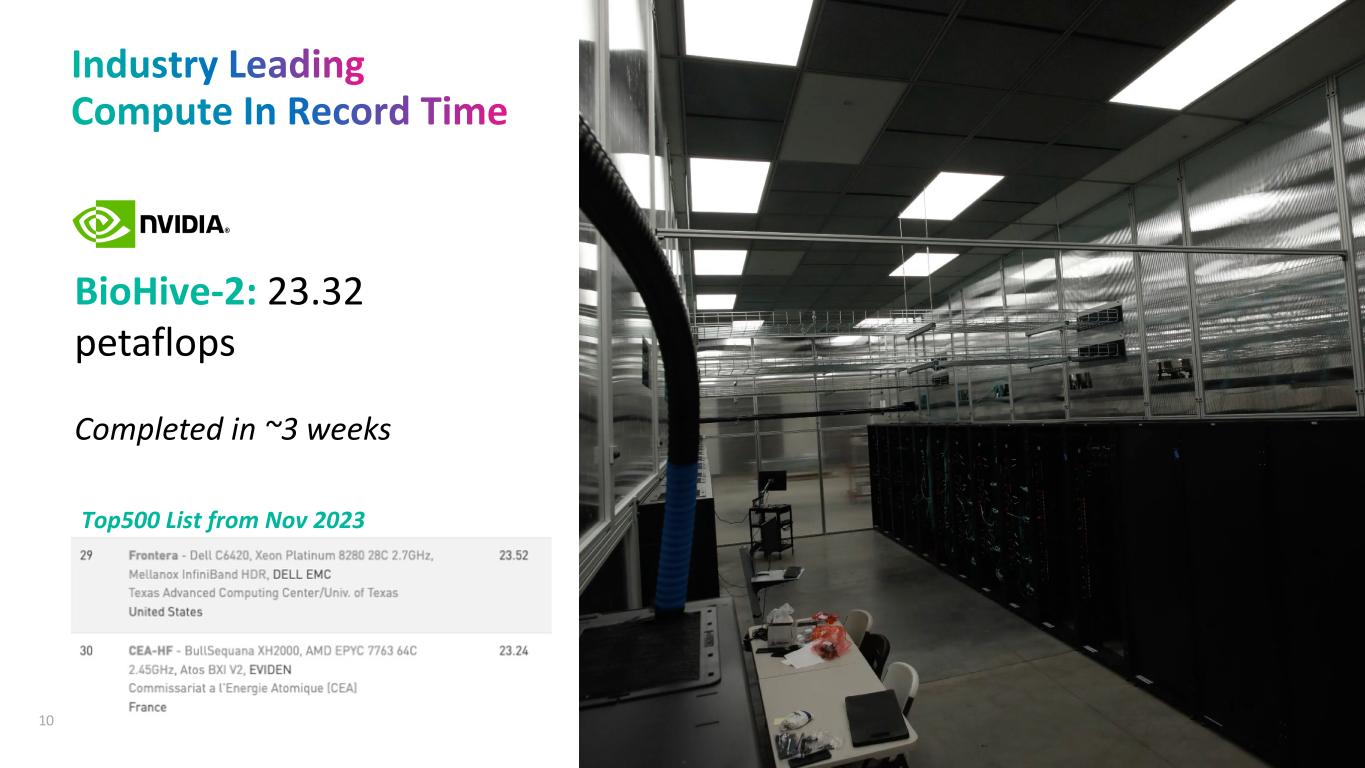 BioHive-2: 23.32 petaflops Completed in ~3 weeks 10 Top500 List from Nov 2023