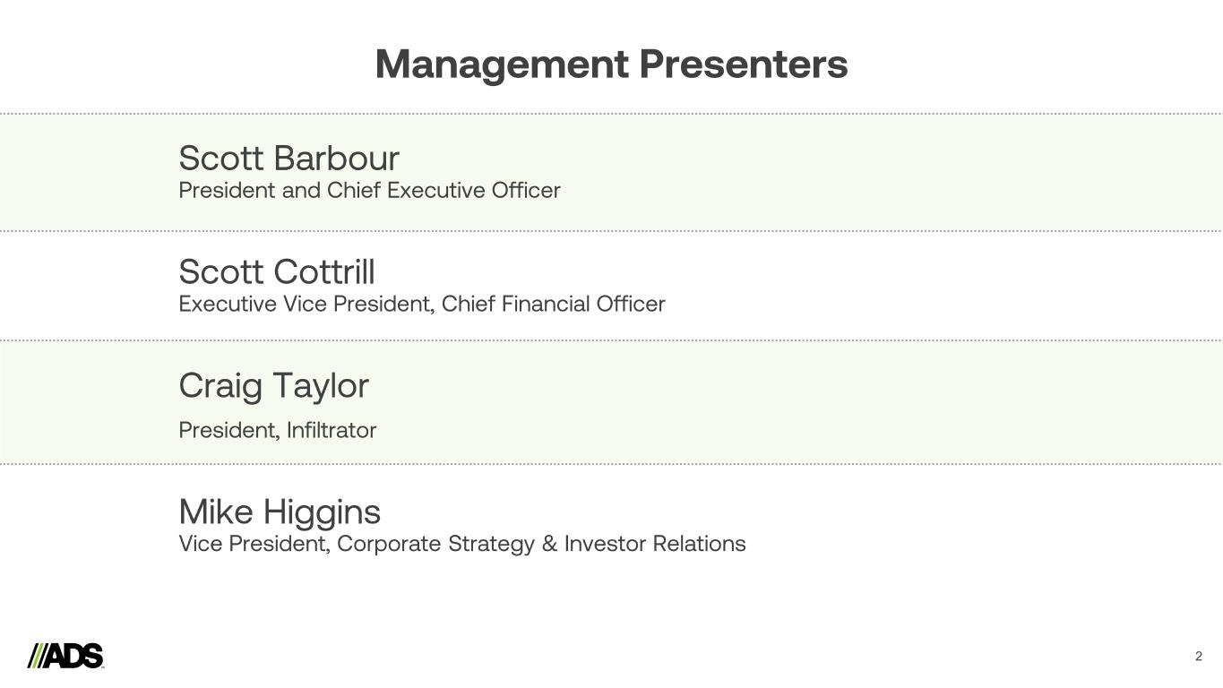 Management Presenters 2 Scott Barbour President and Chief Executive Officer Scott Cottrill Executive Vice President, Chief Financial Officer Craig Taylor President, Infiltrator Mike Higgins Vice President, Corporate Strategy & Investor Relations