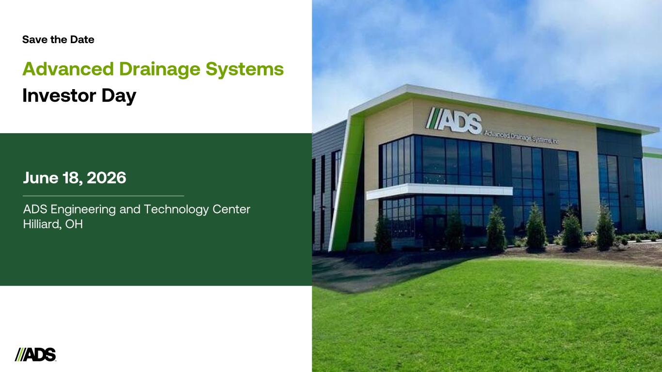5 Advanced Drainage Systems Investor Day June 18, 2026 ADS Engineering and Technology Center Hilliard, OH Save the Date