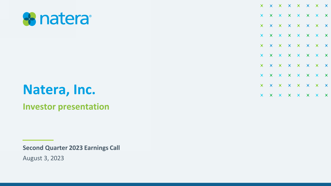 Natera, Inc. Investor presentation Second Quarter 2023 Earnings Call August 3, 2023