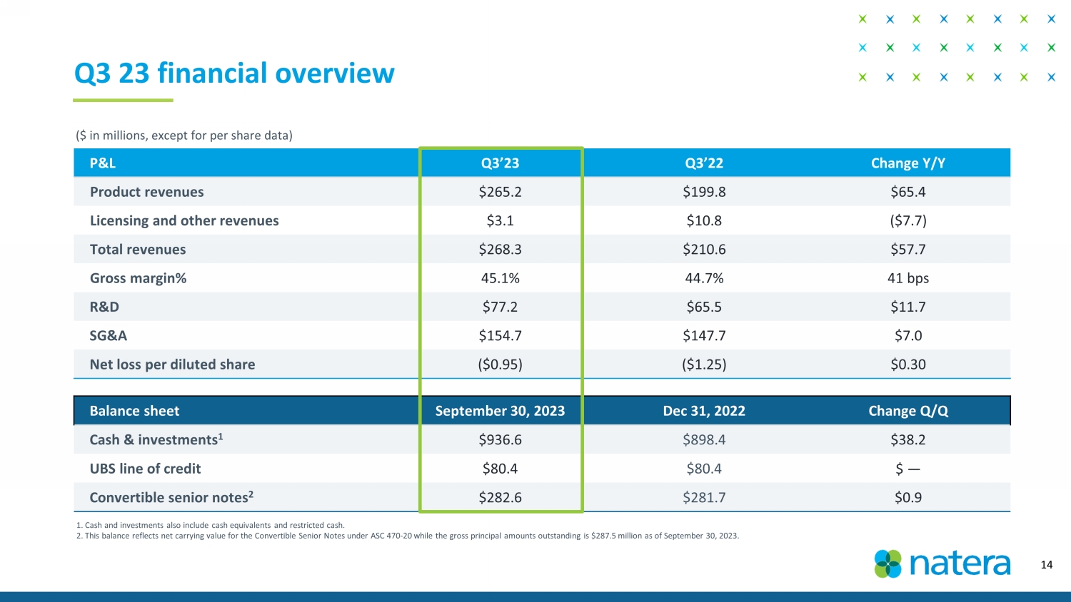 Natera, Inc. Investor presentation Third Quarter 2023 Earnings Call November 8, 2023 Confidential Draft