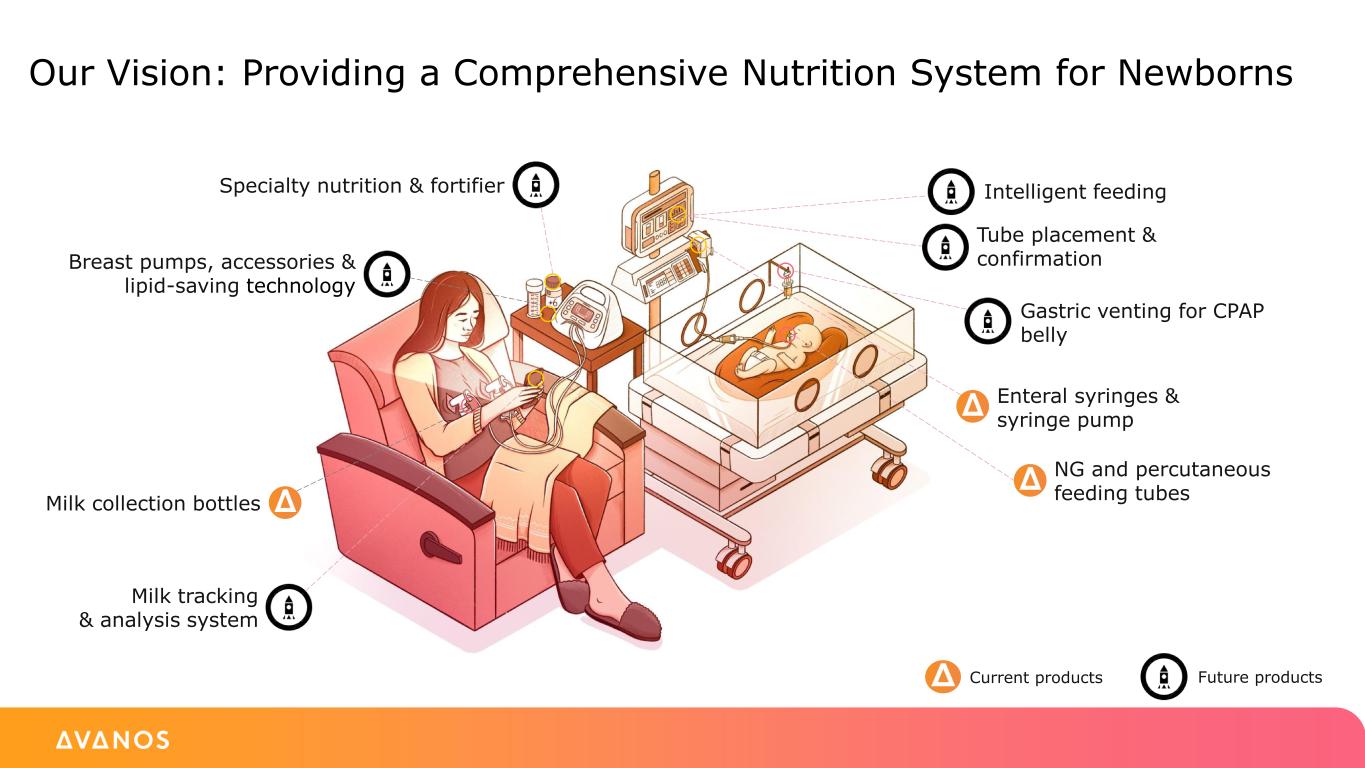 Our Vision: Providing a Comprehensive Nutrition System for Newborns Milk collection bottles Breast pumps, accessories & lipid-saving technology Milk tracking & analysis system NG and percutaneous feeding tubes Gastric venting for CPAP belly Intelligent feeding Tube placement & confirmation Enteral syringes & syringe pump Specialty nutrition & fortifier Current products Future products