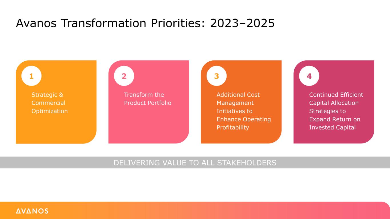 Avanos Transformation Priorities: 2023–2025 Strategic & Commercial Optimization 1 Transform the Product Portfolio 2 Additional Cost Management Initiatives to Enhance Operating Profitability 3 Continued Efficient Capital Allocation Strategies to Expand Return on Invested Capital 4 DELIVERING VALUE TO ALL STAKEHOLDERS
