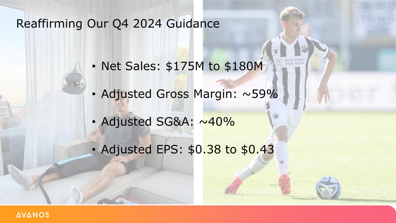 Reaffirming Our Q4 2024 Guidance • Net Sales: $175M to $180M • Adjusted Gross Margin: ~59% • Adjusted SG&A: ~40% • Adjusted EPS: $0.38 to $0.43