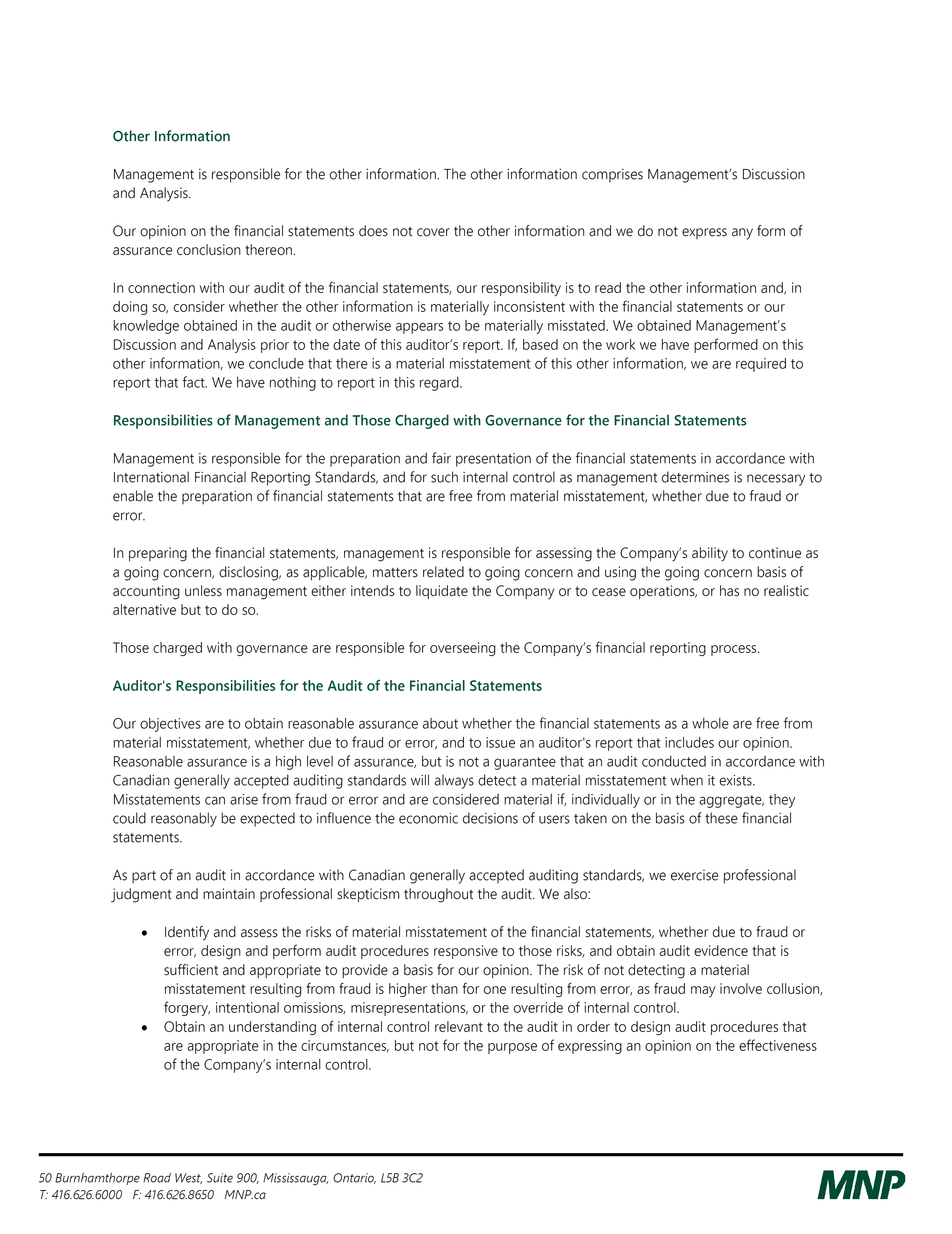 The preparation of financial statements in conformity with IFRS requires management to make estimates, judgments and assumptions that affect the amounts reported in the financial statements and accompanying notes. The Company’s management believes that the estimates, judgment and assumptions used are reasonable based upon information available at the time they are made. These estimates, judgments and assumptions can affect the reported amounts of assets and liabilities at the dates of the financial statements, and the reported amount of expenses during the reporting periods. Actual results could differ from those estimates.
