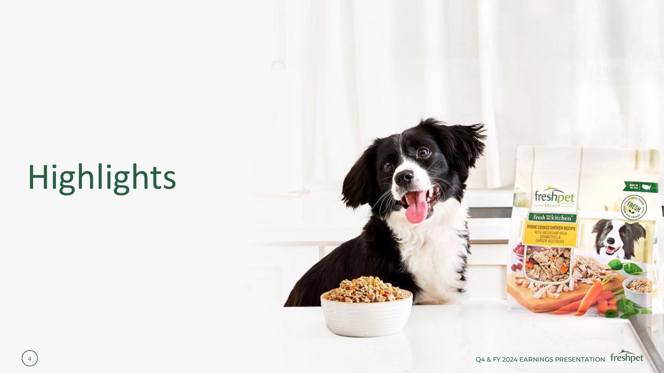 Q4 & FY 2024 EARNINGS PRESENTATION3 Freshpet strengthens the bond between people and our pets so that we both live longer, healthier and happier lives while being kind to the planet.