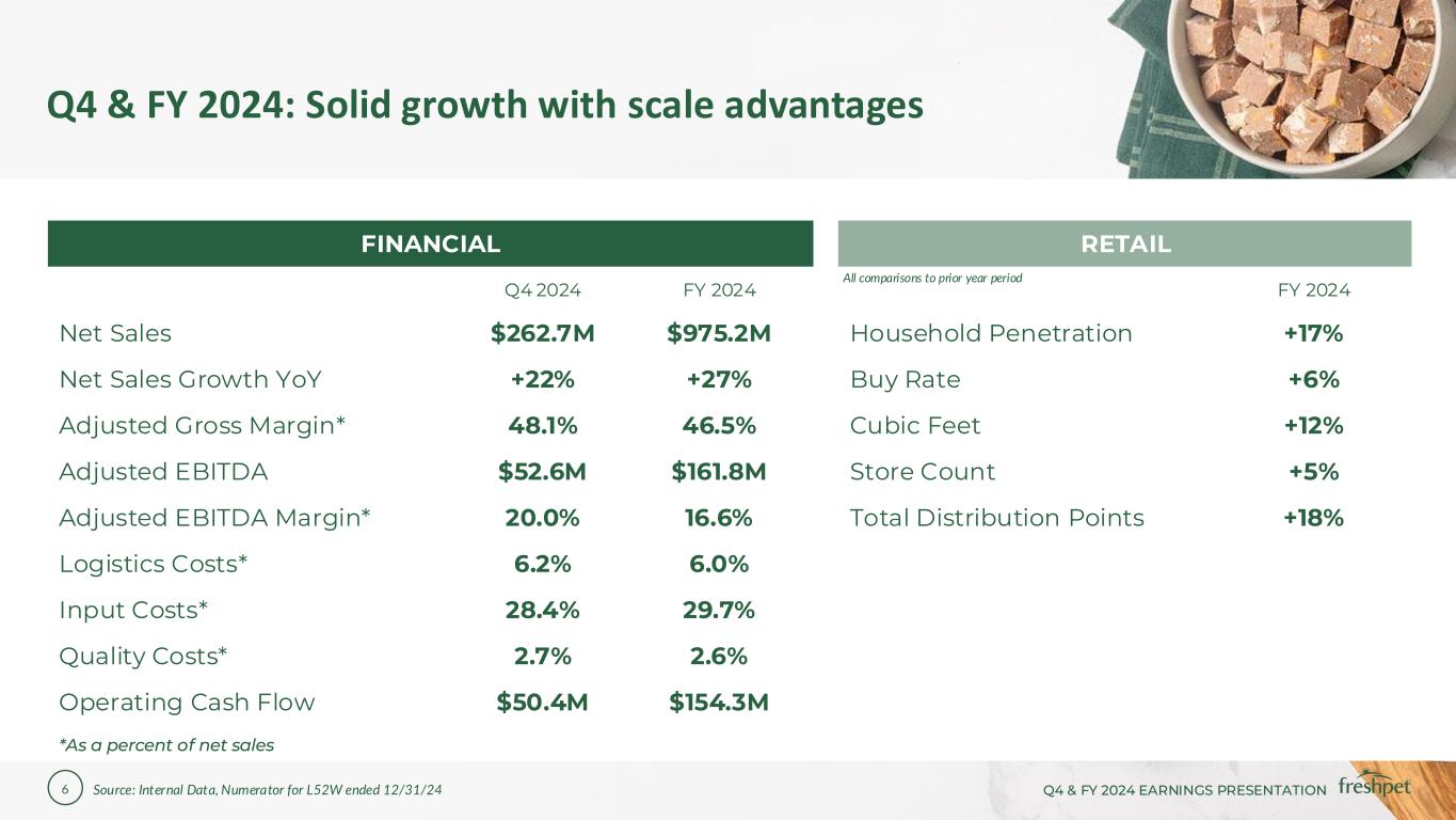 Q4 & FY 2024 EARNINGS PRESENTATION5 “Fiscal year 2024 was a breakout year for Freshpet. We continued to deliver the exceptional net sales growth investors have come to expect from Freshpet but also delivered very strong profit improvements… This strong performance also enables us to raise our long-term profit margin targets today to reflect the additional scale benefits we believe we can deliver as we transform the pet food category and nourish pets, people, and the planet.”