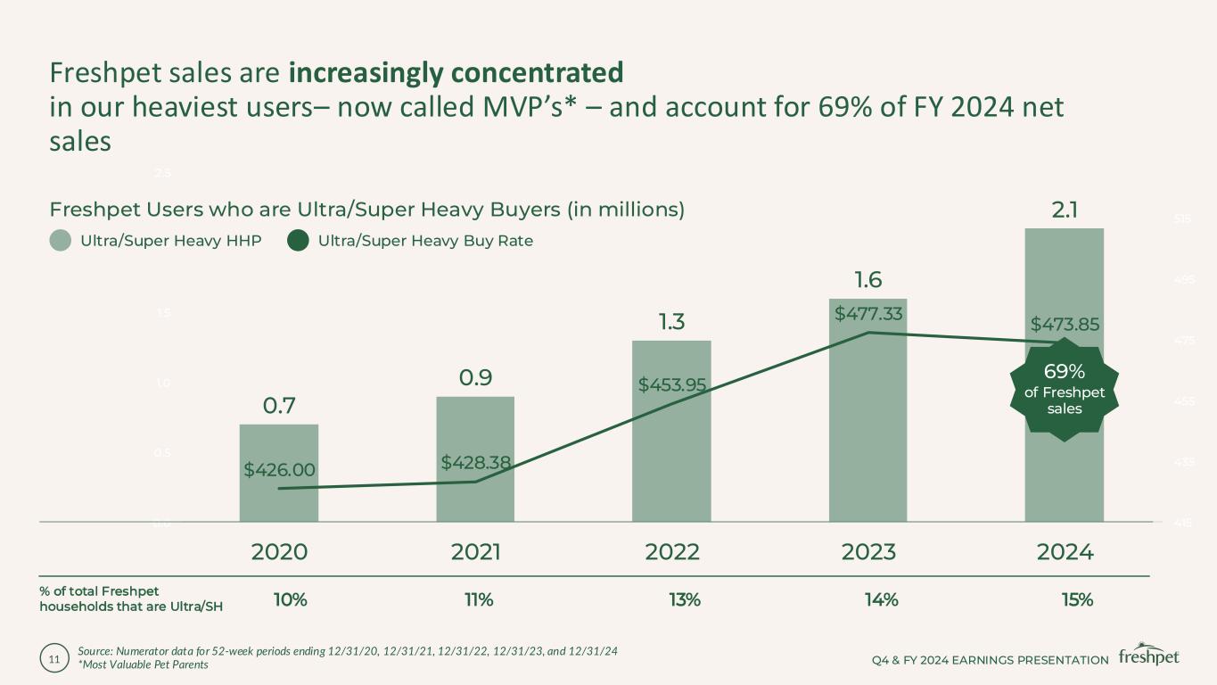 Q4 & FY 2024 EARNINGS PRESENTATION10 7.3 8.6 9.9 11.6 13.5 2020 2021 2022 2023 2024 +17% +17% +15% +17% Continued growth in consumer franchise; added ~2m households YoY Source: Numerator Panel data for the 52-week periods ending 12/31/20, 12/31/21, 12/31/22, 12/31/23, and 12/31/24 Freshpet Household Penetration Growth (in millions) (52 weeks)