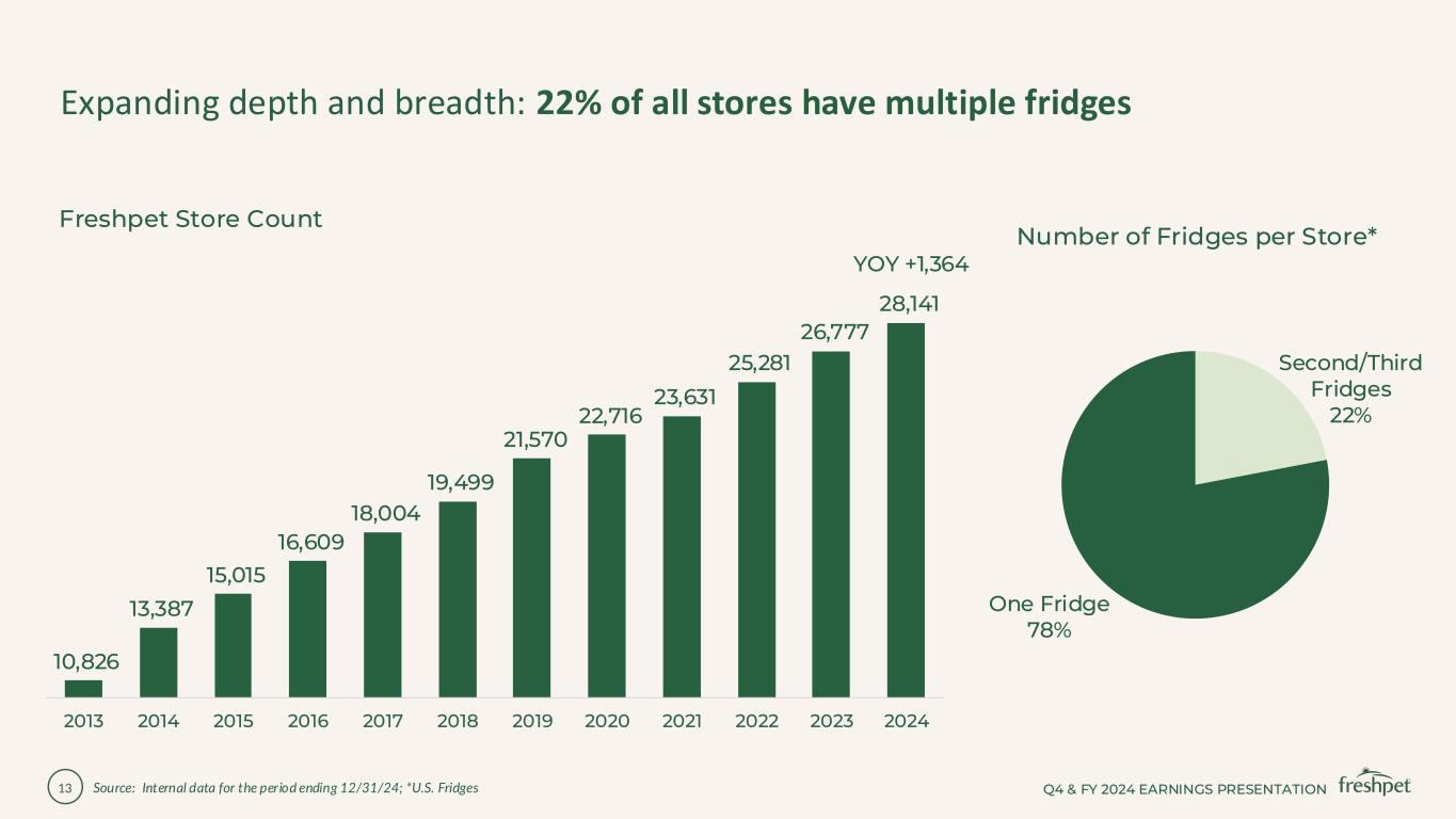 Q4 & FY 2024 EARNINGS PRESENTATION12 $71.72 $76.58 $90.71 $99.30 $104.89 2020 2021 2022 2023 2024 Converting toppers into main meal users will continue to increase buy rate Source: Numerator Panel data for the 52-week periods ending 12/31/20, 12/31/21, 12/31/22, 12/31/23, and 12/31/24 Freshpet Buy Rate (52 weeks) +6% +9% +18% +7%