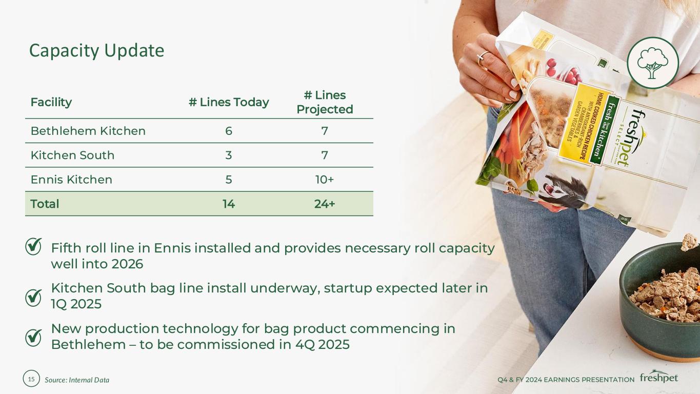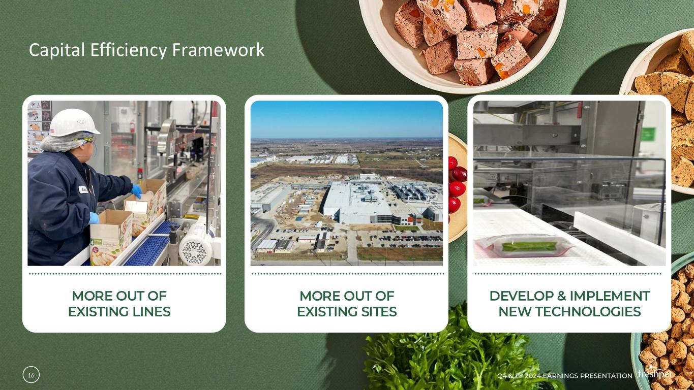 Q4 & FY 2024 EARNINGS PRESENTATION15 Capacity Update Source: Internal Data Facility # Lines Today # Lines Projected Bethlehem Kitchen 6 7 Kitchen South 3 7 Ennis Kitchen 5 10+ Total 14 24+ Q4 & FY 2024 EARNINGS PRESENTATION Fifth roll line in Ennis installed and provides necessary roll capacity well into 2026 Kitchen South bag line install underway, startup expected later in 1Q 2025 New production technology for bag product commencing in Bethlehem – to be commissioned in 4Q 2025