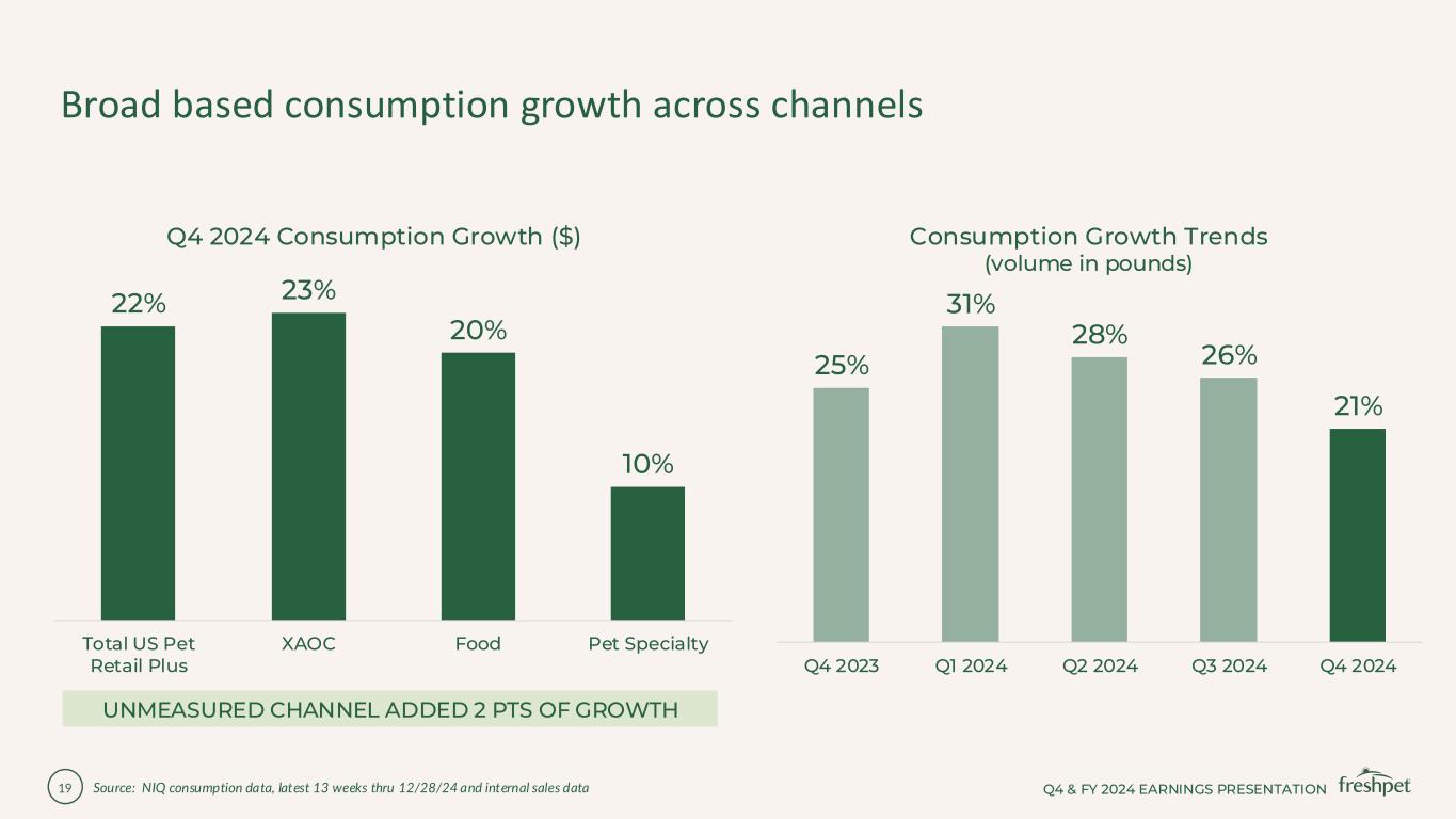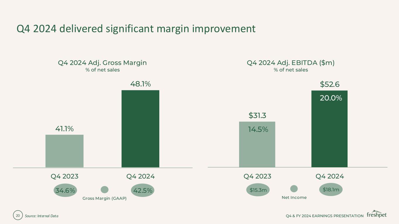 Q4 & FY 2024 EARNINGS PRESENTATION19 Broad based consumption growth across channels Source: NIQ consumption data, latest 13 weeks thru 12/28/24 and internal sales data Q4 2024 Consumption Growth ($) Consumption Growth Trends (volume in pounds) 22% 23% 20% 10% Total US Pet Retail Plus XAOC Food Pet Specialty 25% 31% 28% 26% 21% Q4 2023 Q1 2024 Q2 2024 Q3 2024 Q4 2024 UNMEASURED CHANNEL ADDED 2 PTS OF GROWTH