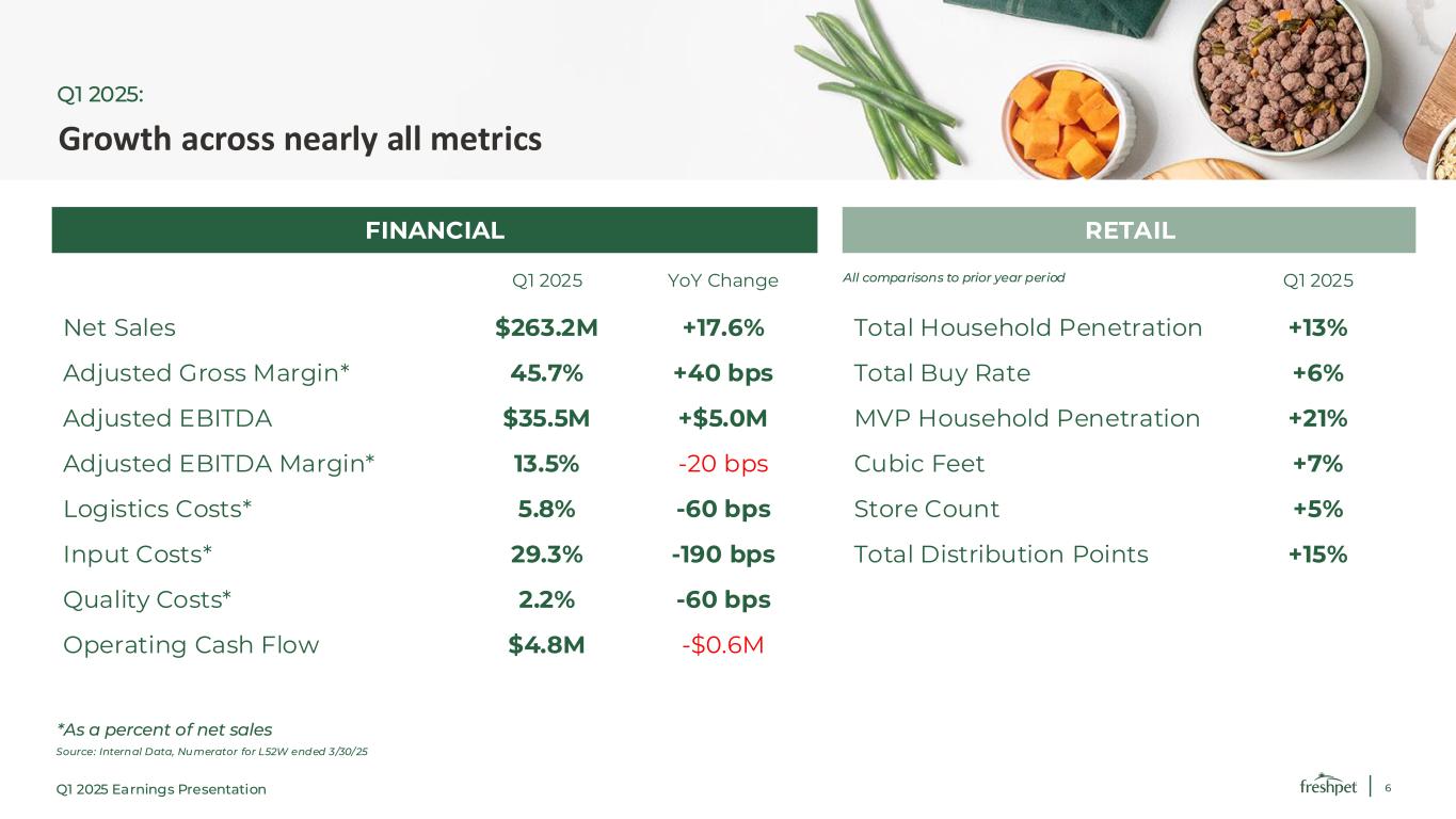 Q1 2025 Earnings Presentation 5 “Despite the recent macro- economic headwinds, we believe Freshpet remains a structurally advantaged business with a long runway for growth in a category with long-term tailwinds.”