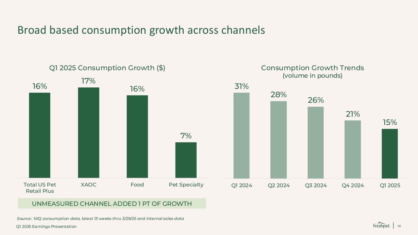 Q1 2025 Earnings Presentation 18 Broad based consumption growth across channels Source: NIQ consumption data, latest 13 weeks thru 3/29/25 and internal sales data Q1 2025 Consumption Growth ($) Consumption Growth Trends (volume in pounds) 16% 17% 16% 7% Total US Pet Retail Plus XAOC Food Pet Specialty 31% 28% 26% 21% 15% Q1 2024 Q2 2024 Q3 2024 Q4 2024 Q1 2025 UNMEASURED CHANNEL ADDED 1 PT OF GROWTH
