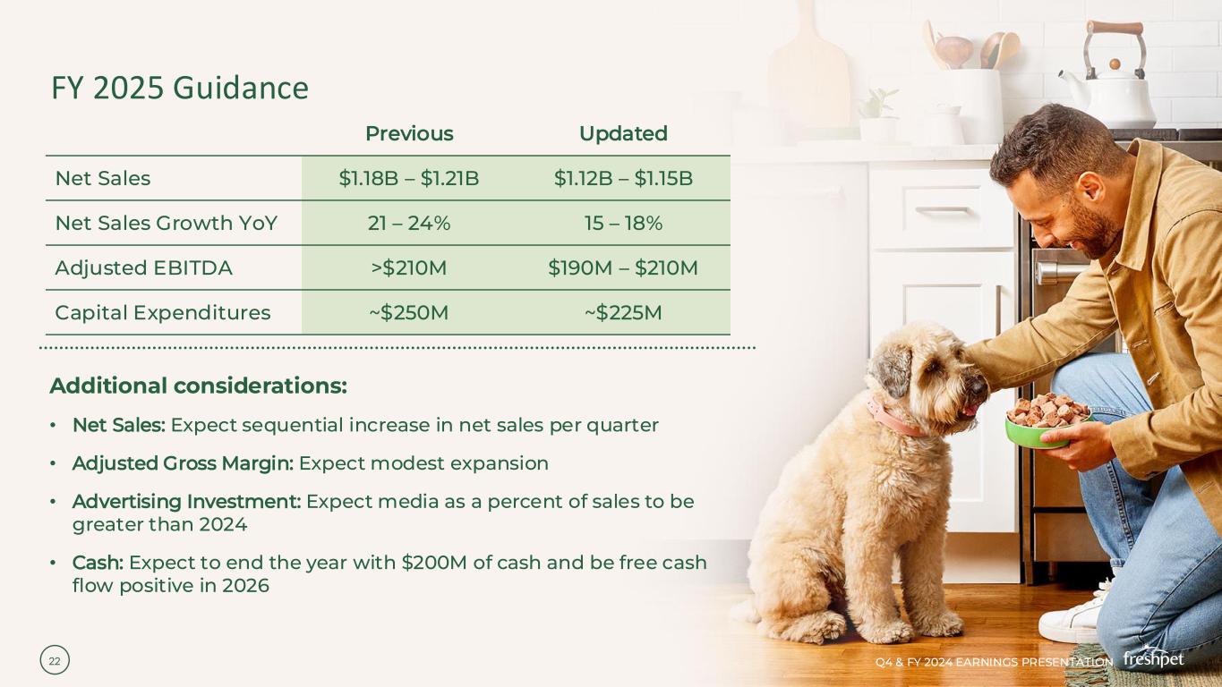 Q4 & FY 2024 EARNINGS PRESENTATION23 2027 Targets Expand HH Penetration Increase Velocity Advertising & Innovation Expand Visibility & Availability Drive Efficiencies Build Organization Capability to Increase Effectiveness & Leverage Scale Expand Capacity 22% Adjusted EBITDA Margin Target $1.8 billion Net Sales Target 20 million Target Freshpet Households 48% Adjusted Gross Margin Target